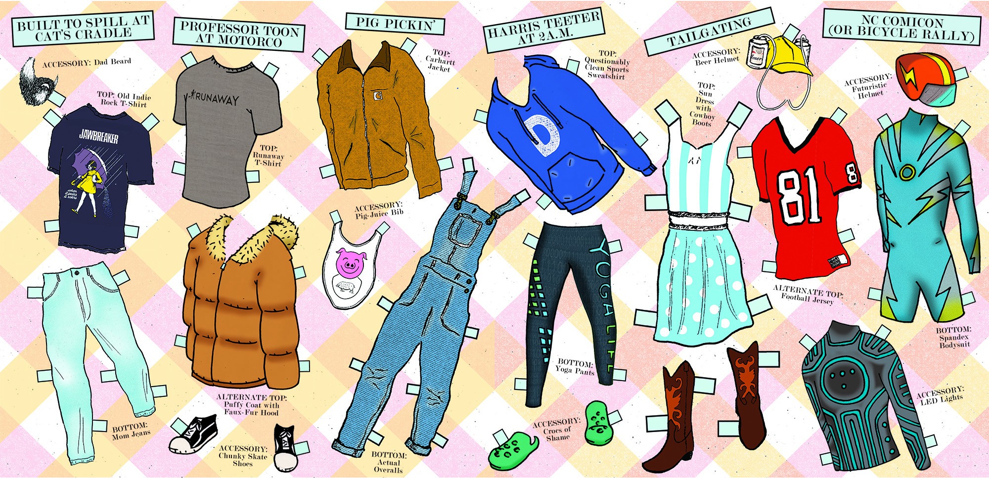 Really though, our crash course in how to dress where is a bit of a laugh. One of the things we love most about the Triangle, including its style, is its individuality and self-definition. So if you want to throw on the opera cloak for a Motorco show or rock the overalls at DPAC—hey, you do you.